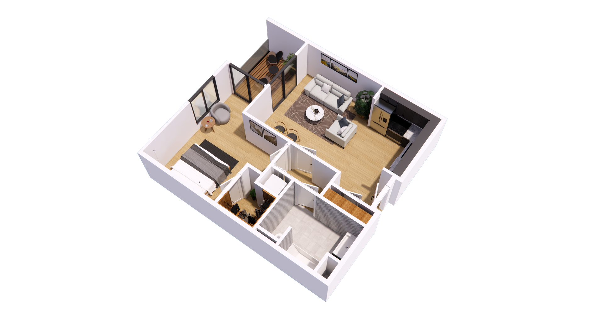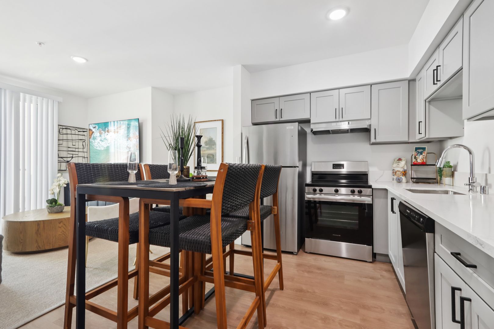At The Brightly, you can relax by the pool in our beautiful cabanas or play billiards in the recreation room. Our state-of-the-art fitness center is open 24/7 and is equipped with Peloton and Tonal machines. Our apartments feature open-concept studios, one-bedroom, and two-bedroom homes with deluxe stainless-steel appliances, an in-home washer and dryer, quartz countertops, laminate flooring, and private balconies with stunning views.